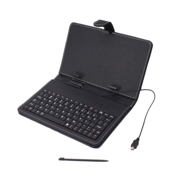 High-quality Artificial Leather Keyboard Leather Case Provides protection from scratches and bumps Magnet flap closure, Flip Out Stand at the back Compatible Devices Designed for 9,7'' inch Tablet PC Weight (kgs)aprox: 400g include: 2 x usb adaptors ( USB to 5pin and USB to micro)