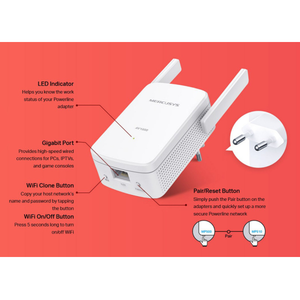 MERCUSYS Powerline Extender MP510 Kit AV1000 Gigabit WiFi Ver: 1.0