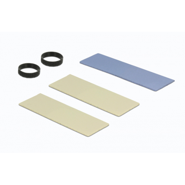 This heat sink by Delock can be used for heat dissipation of an M.2 module and can be fixed with the attached self-adhesive thermal pads to the M.2 module.