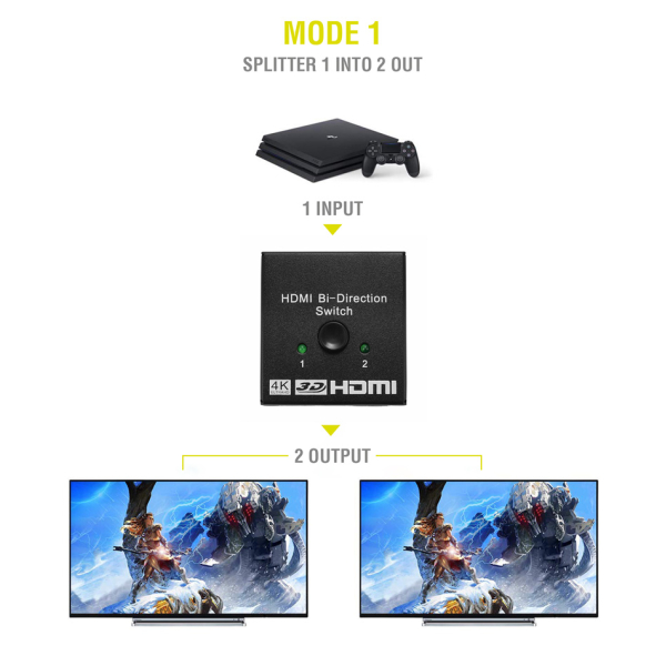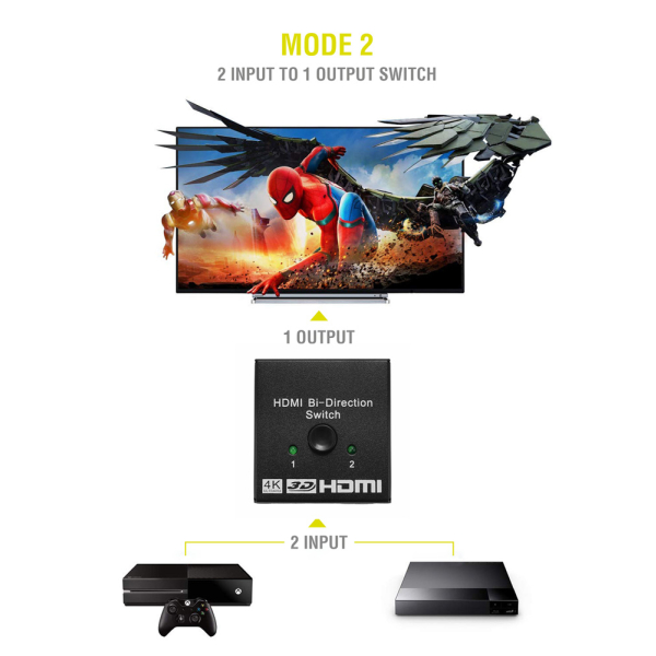 O HDMI 2-1 Bi-Directional διακόπτης καθιστά δυνατή την κοινή χρήση ενός σήματος HDMI από μια συσκευή HDMI σε δύο οθόνες ή για τη σύνδεση 2 συσκευών HDMI σε μια οθόνη. Πλήρως συμβατό με HDMI V1.0, V1.1, V1.2, V1.3, V1.4.