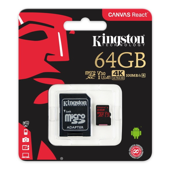 Κάρτα Μνήμης Kingston Canvas React Micro SDXC U3 64GB + Adapter