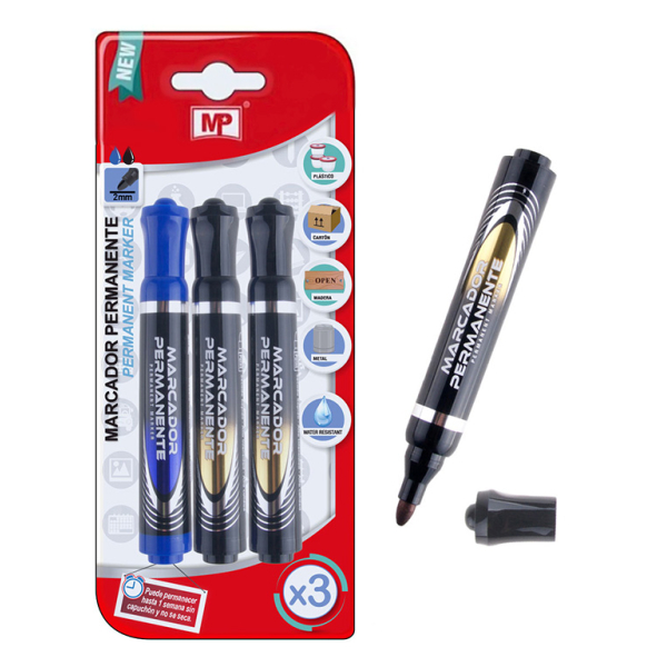 MP ανεξίτηλος μαρκαδόρος PE510-01, 2mm, 2x μαύρο 1x μπλε