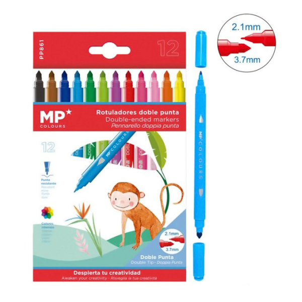 MP σετ χρωματιστών μαρκαδόρων με διπλή μύτη 2.1 & 3.7mm PP861, 12τμχ