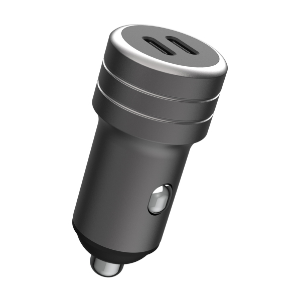 Car Charger POWERTECH PT-1149, 2x USB-C, 100W PD Grey