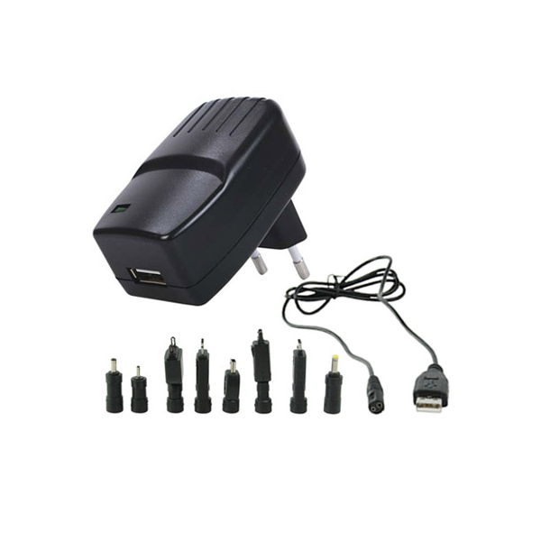 Τροφοδοτικό USB, 1000mAh, με 8 διαφορετικά βύσματα και καλώδιο, κατάλληλο για μία ευρεία γκάμα φορητών συσκευών USB, όπως κινητά τηλέφωνα (παλαιότερα μοντέλα), ψηφιακές φωτογραφικές μηχανές, MP3 players, I-pod κ.α.