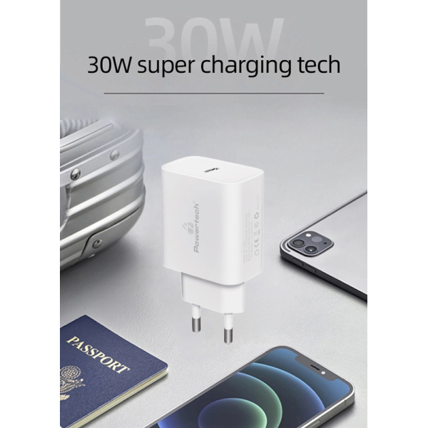 Charger PT-1043, USB-C, PD QC3.0, 30W, White