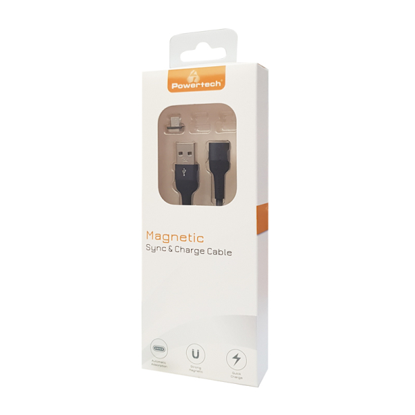 Cable POWERTECH PT-750 3.0A USB 2.0 to Micro Braided Magnetic 1m