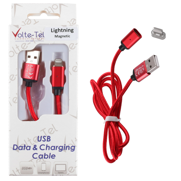 Cable Volte-Tel VCD07 2.1A USB Braided Magnetic with Adapter Lightning 1m