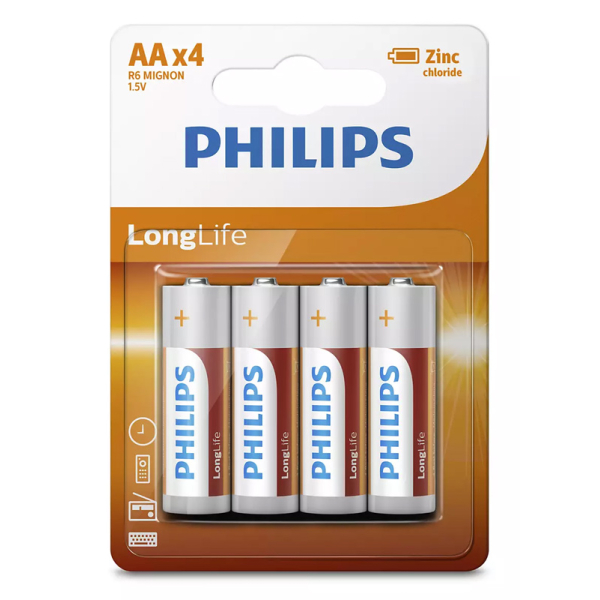 Home » Computer & Upgrade » Consumables » Batteries » Alkaline » PHILIPS Battery LongLife Zinc chloride R6L4B/10 AA R6 Mignon 4pcs