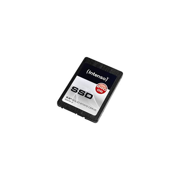 Intenso 240GB SSD. SSD drive capacity: 240 GB, Solid State Drive (SSD) Interface: Serial ATA III, read speed: 520 MB / s. SSD Form Factor: 2.5 'Product color: black, protection function: Shock resistant Width:. 7 cm, depth: 10 cm, height: 7 mm