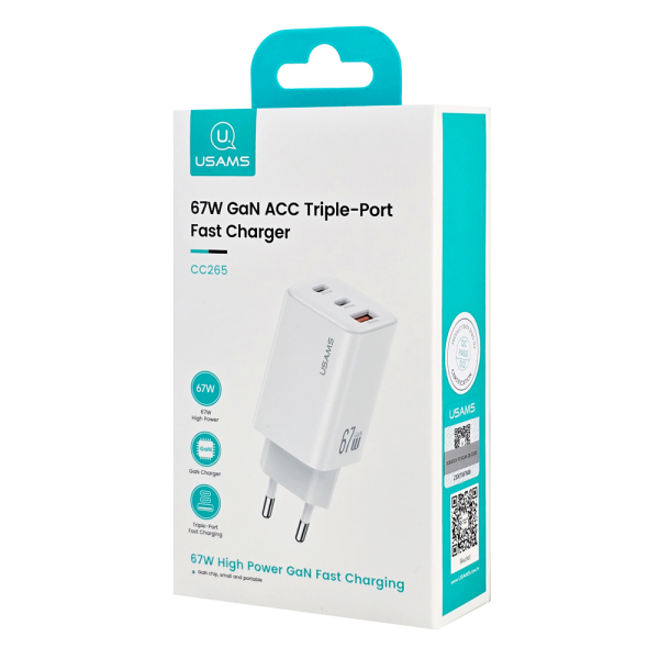 Wall Charger CC265, USB & 2x USB-C, 67W, GaN